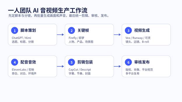 6. 发布:同一条内容做9:16短视频、1:1图文摘要和16:9长视频片段。