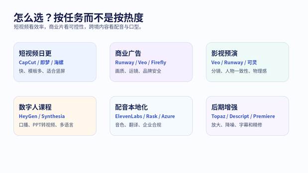 图:按任务选择AI视频和配音工具,而不是只看热度。
