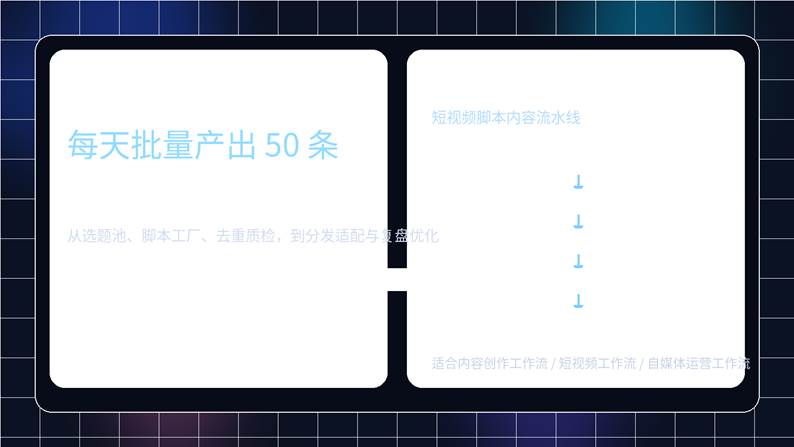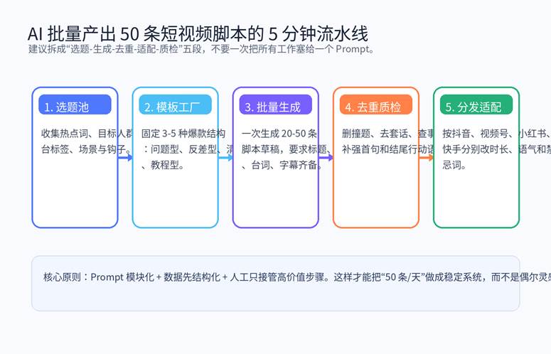 所以,这篇文章的核心不是教你“一次生成 50 条”,而是教你如何把 50 条脚本做成一个每天都能稳定复制的产线。