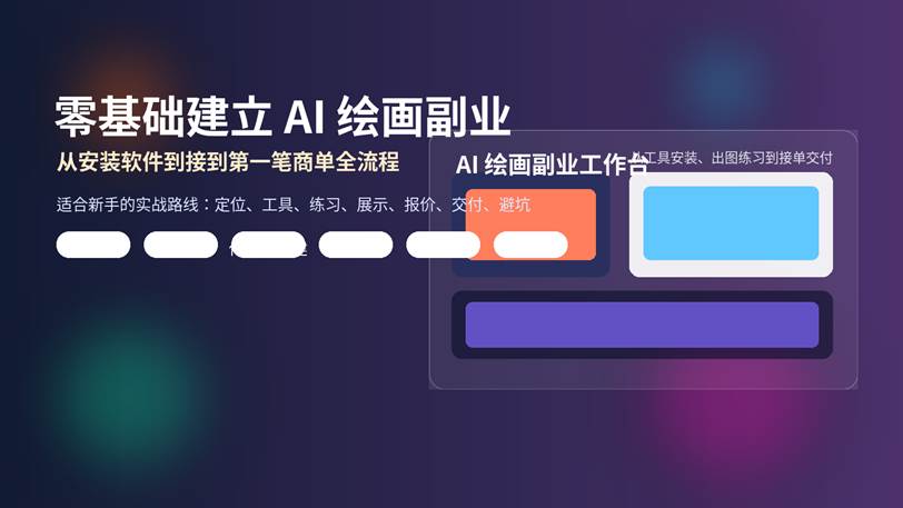 适合新手的图像生成副业入门指南 · 工具搭建 · 作品集 · 接单报价 · 交付模板