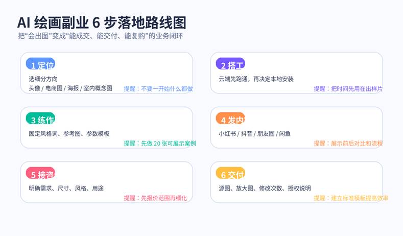 图 1 AI 绘画副业的 6 步落地路线图