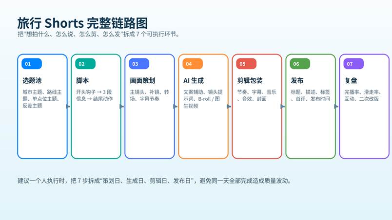 图 1|把旅行 Shorts 拆成 7 个可执行环节,会比“想到了就拍”更稳定。