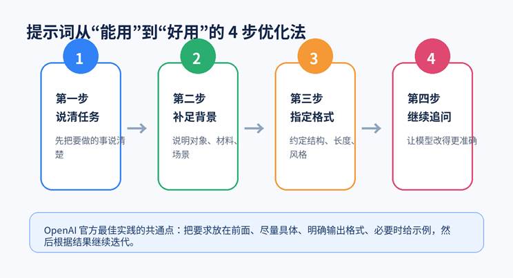 图 3 提示词从“能用”到“好用”的 4 步优化法