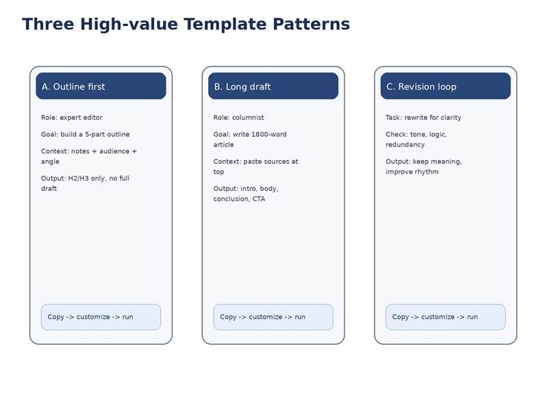 把大纲、长文初稿、改写润色、事实校对与 revision loop 一次讲透,附可直接复制的高质量模板。