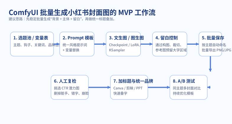图 1|适合小红书封面图的 ComfyUI MVP 工作流:先批量出稳定底图,再统一加标题