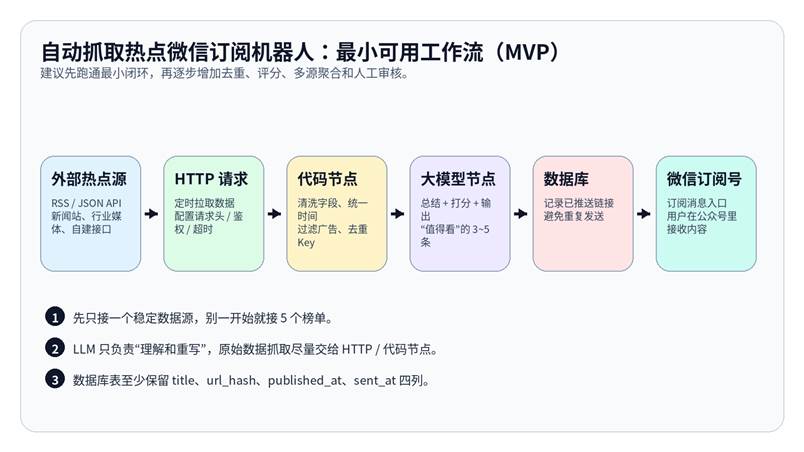 • 分发层:把结果投递到微信订阅号,让读者在熟悉的入口里接收信息。