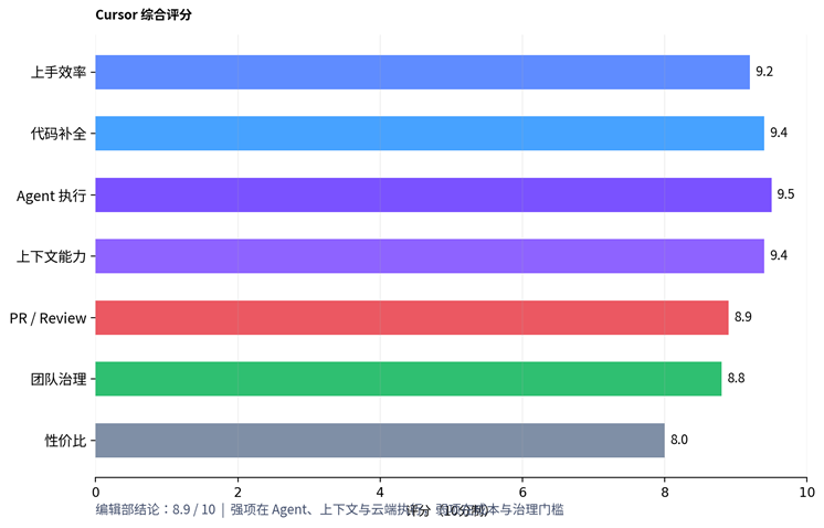 下面这份评分不是实验室跑分,而是站在真实开发流程里,对上手效率、补全体验、Agent 执行、上下文管理、团队治理和性价比做出的编辑部判断。它更关心“日常能不能持续用”,而不是单次 demo 看起来有多惊艳。