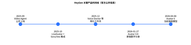如果把 2025 到 2026 的 HeyGen 看成一条主线,你会发现它的重心非常清晰:先让 Video Agent 把出片门槛拉低,再用 Avatar 3.0 / V 提升数字人的真实度,再把互动头像、LMS、企业治理和本地化串起来。它不是在卷“更酷的 demo”,而是在卷“更完整的商业闭环”。