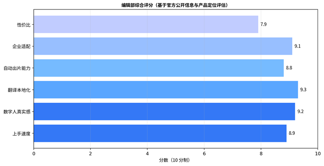 - 数字人、翻译、互动头像、自动出片和企业治理能力整合度高。
