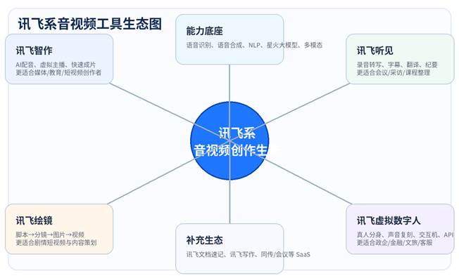 - 媒体、教育培训、知识博主:优先看讯飞智作 + 讯飞听见。