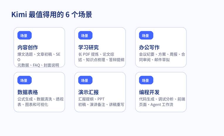 如果你的工作长期围绕‘读资料、做判断、写内容、出文档、做汇报、搭流程’,那 Kimi 是值得长期放进主流程的。它的价值不在于偶尔陪你聊天,而在于把大量知识型劳动前置自动化。