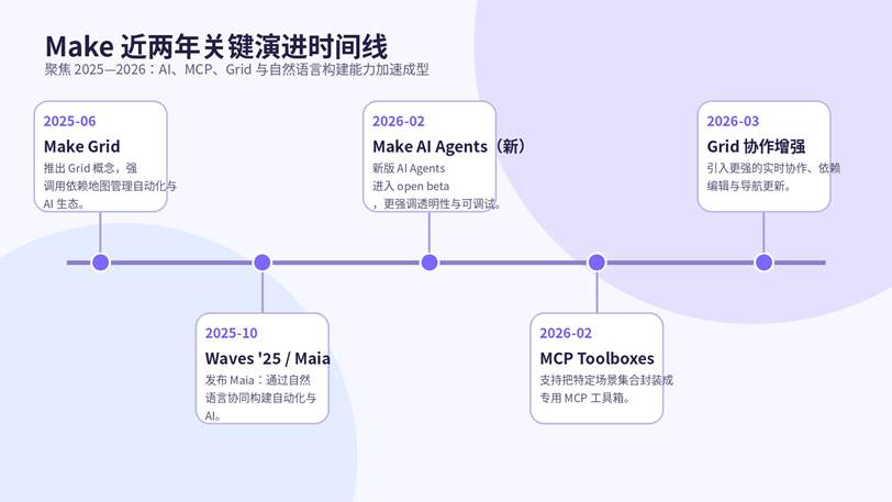 图 2|Make 近两年关键演进时间线