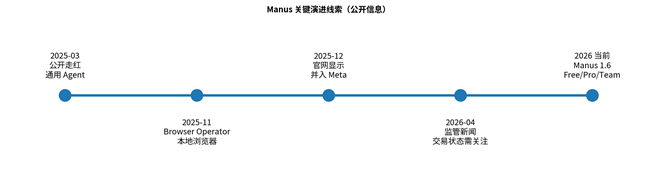 需要特别注意的是:Manus 官网当前页面显示“Manus is now part of Meta — bringing AI to businesses worldwide”,但 Reuters 在 2026 年 4 月 27 日报道称,中国已要求 Meta 撤销对 Manus 的收购交易。因此,文章发布时建议把“产品能力”和“公司/交易状态”分开表述:功能与价格以官方页面为准,公司归属与监管结果则以最新官方公告和权威新闻为准。