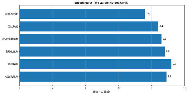综合评分:8.6 / 10。Manus 在大规模调研、跨工具自动化、网站构建和结果交付方面很强;但它的成本透明度、任务稳定性和复杂场景可控性仍需要用户理解和管理。它更适合“明确目标 + 可验收结果”的工作,不适合完全放任式执行。
