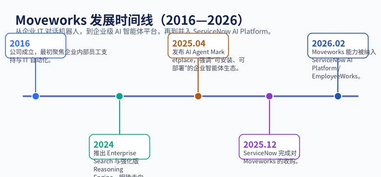 最新变化2025 年 12 月 ServiceNow 完成对 Moveworks 的收购;2026 年其能力继续融入 ServiceNow AI Platform 与 EmployeeWorks。
