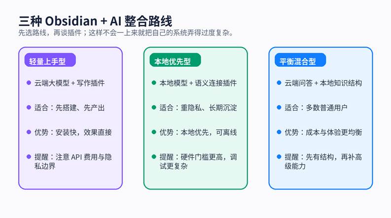 三、先选路线:你适合哪一种 Obsidian + AI 整合方式