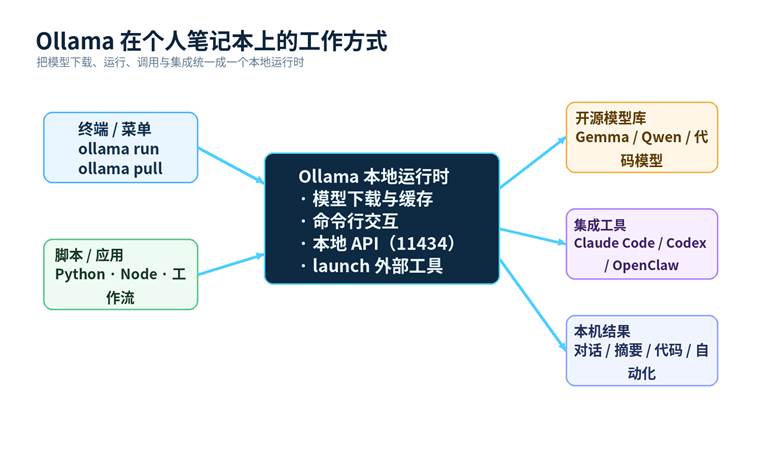 图 1 Ollama 在个人笔记本上的工作方式