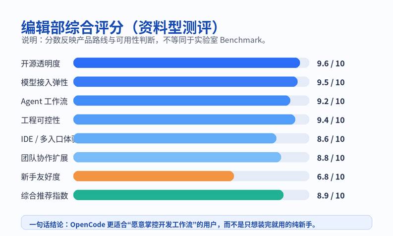 从产品气质看,OpenCode 更像“给高级用户更多控制权”的工具,而不是“替用户把一切复杂度全部藏起来”的工具。也正因为如此,它的优点和门槛都很鲜明。