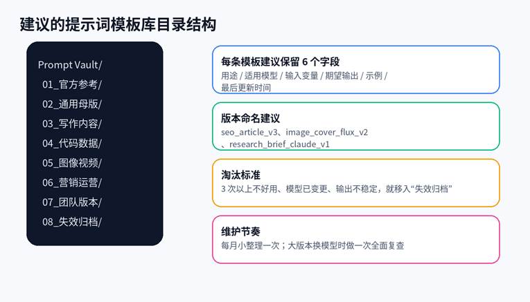 图 2  一个适合长期维护的 Prompt Vault 目录建议。哪怕你只有一个人,也建议从一开始就做版本命名。