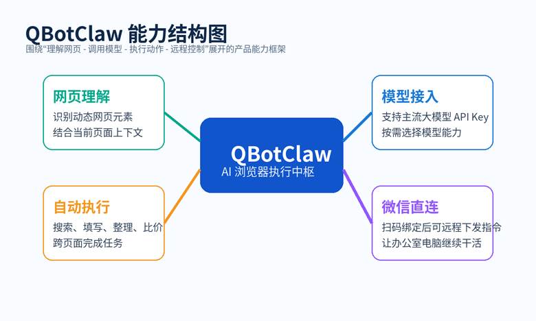 图 1:围绕网页理解、模型接入、自动执行和微信直连构成的能力结构图(示意)