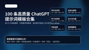 收藏100条高质量ChatGPT提示词模板,按10大场景整理:写作、总结、学习、办公到数据分析,适合新手快速上手与复用。