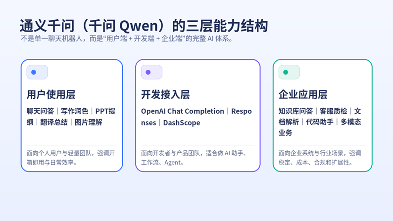 如果你过去对通义千问的印象还停留在“国产聊天机器人”,那么现在最准确的认识应该是:它正在向“模型家族 + 开发平台 + 企业能力底座”演进。