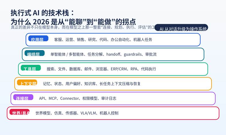 图 2:执行式 AI 的技术栈——真正的差异在模型之上的工程系统
