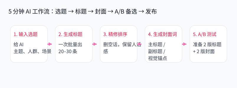 所以你不需要追求“每次都写出神标题”,而是要建立一套稳定的出稿机制:先明确用户、场景和收益,再批量生成标题,再精修成更口语化、更像真实博主会说的话,最后让封面与标题形成同一个信息闭环。